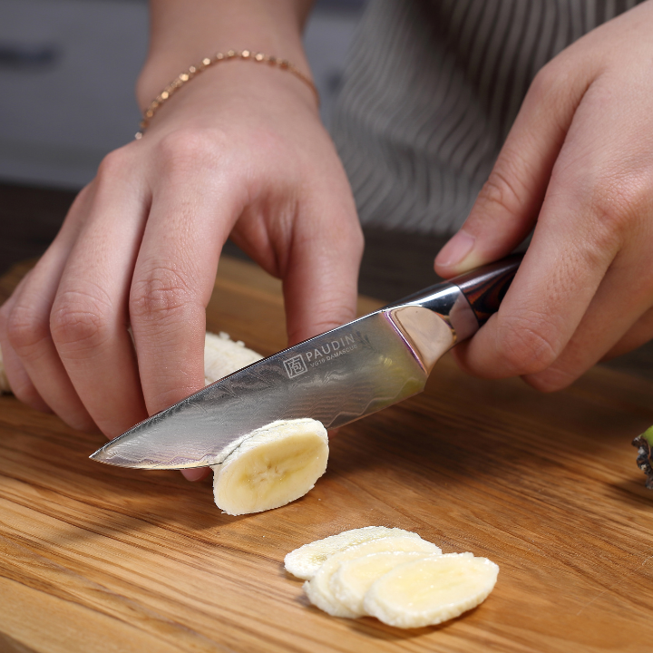 Het Paudin Plume Luxe Damascus Schilmes 9 cm is ideaal voor het snijden van kleinere groenten en fruit. Het korte... Read more