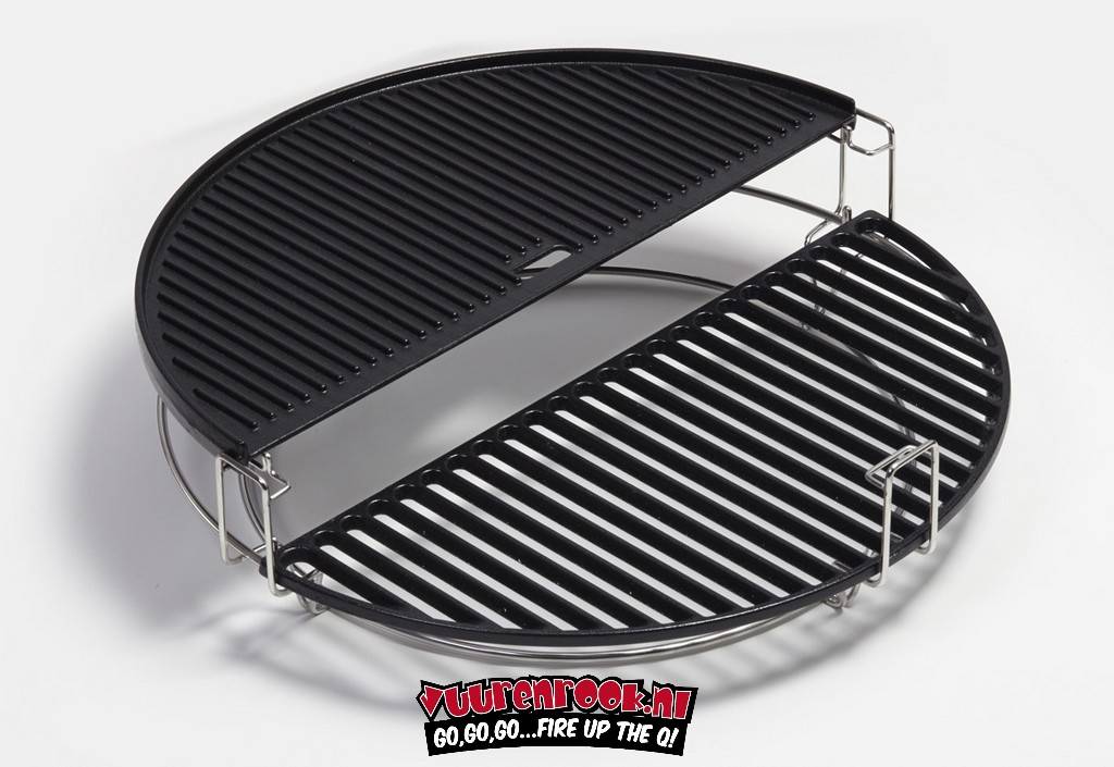 De gietijzeren grillplaat half moon grillplaat van Kamado Joe heeft een geribbelde en een vlakke kant. Handig om om bijvoorbeeld... Lees meer