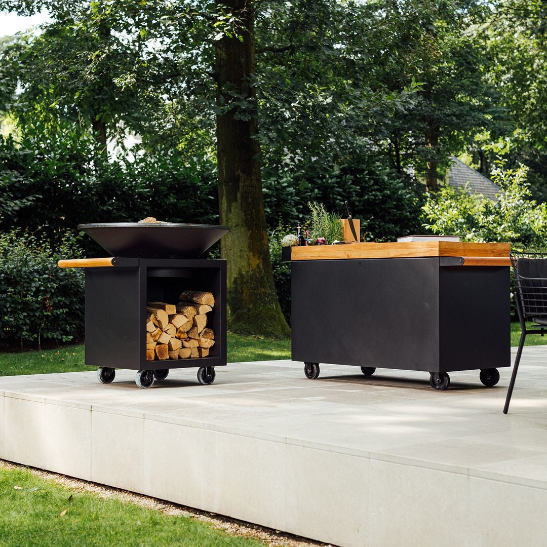 De stijl en eenvoud van de OFYR met als toevoeging een handige opslagruimte voor hout. De OFYR Classic Storage toont niet alleen stand alone prachtig maar ook in combinatie met andere OFYR producten zoals het Butcher Block.